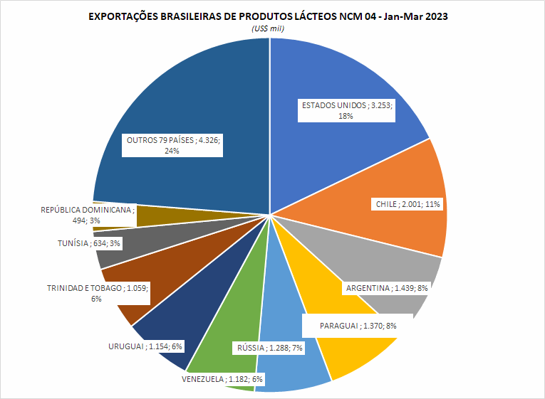 ![]() 09 de maio de 2023 Destinos das exportações brasileiras de lácteos |