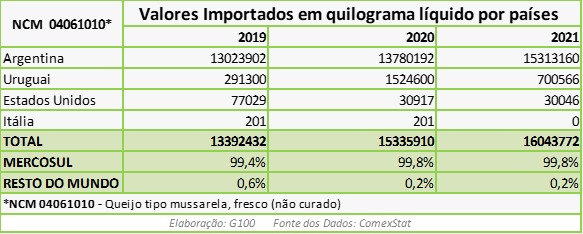 O queijo incluÃdo nesta lista foi o de NCM 04061010 - mussarela